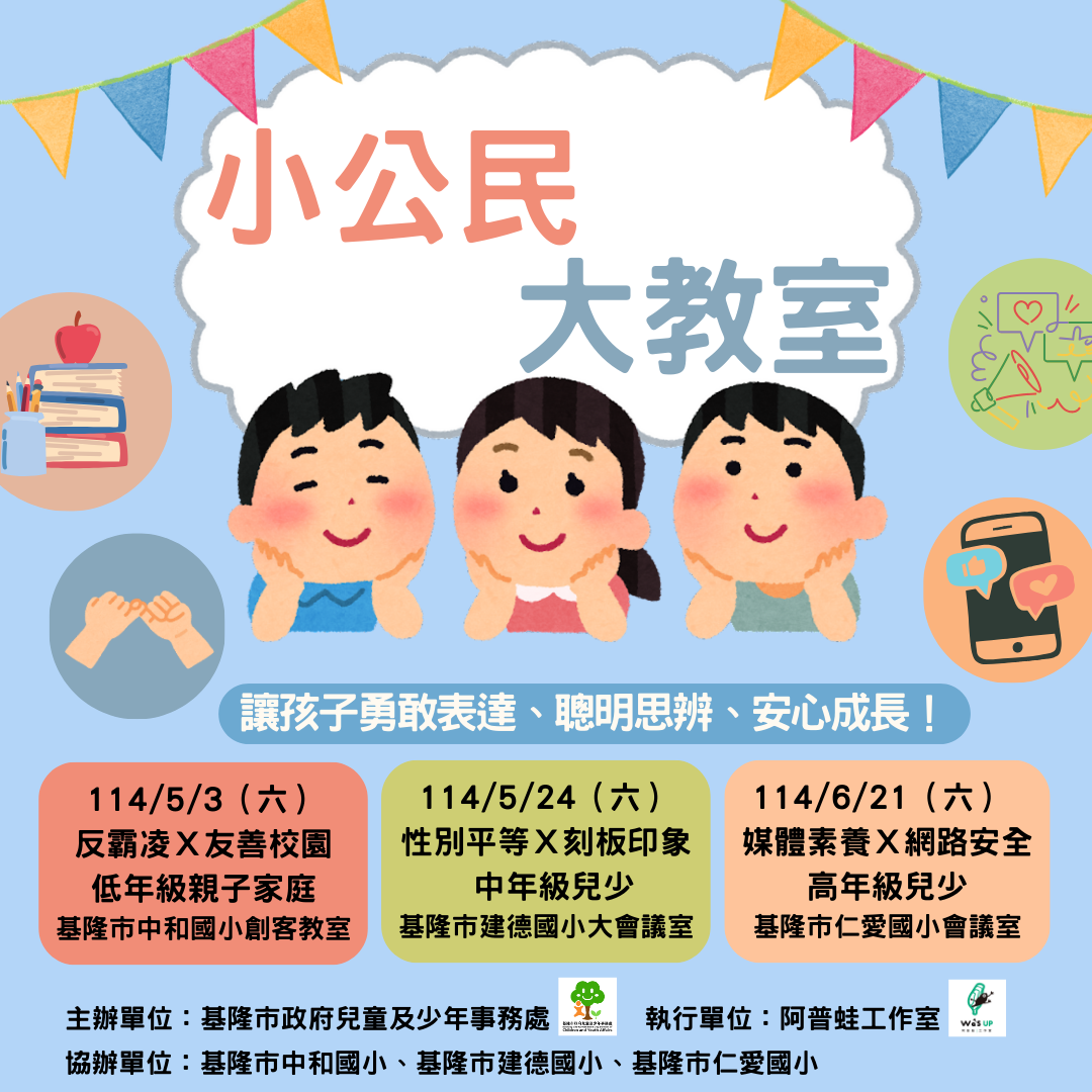 【基隆市政府】「小公民大教室」兒少培力課程 (5/3、5/24、6/21)