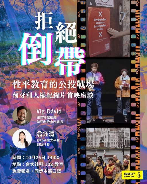 【國際特赦組織】拒絕倒帶:性平教育的公投戰場—匈牙利人權紀錄片首映座談 (10/26)