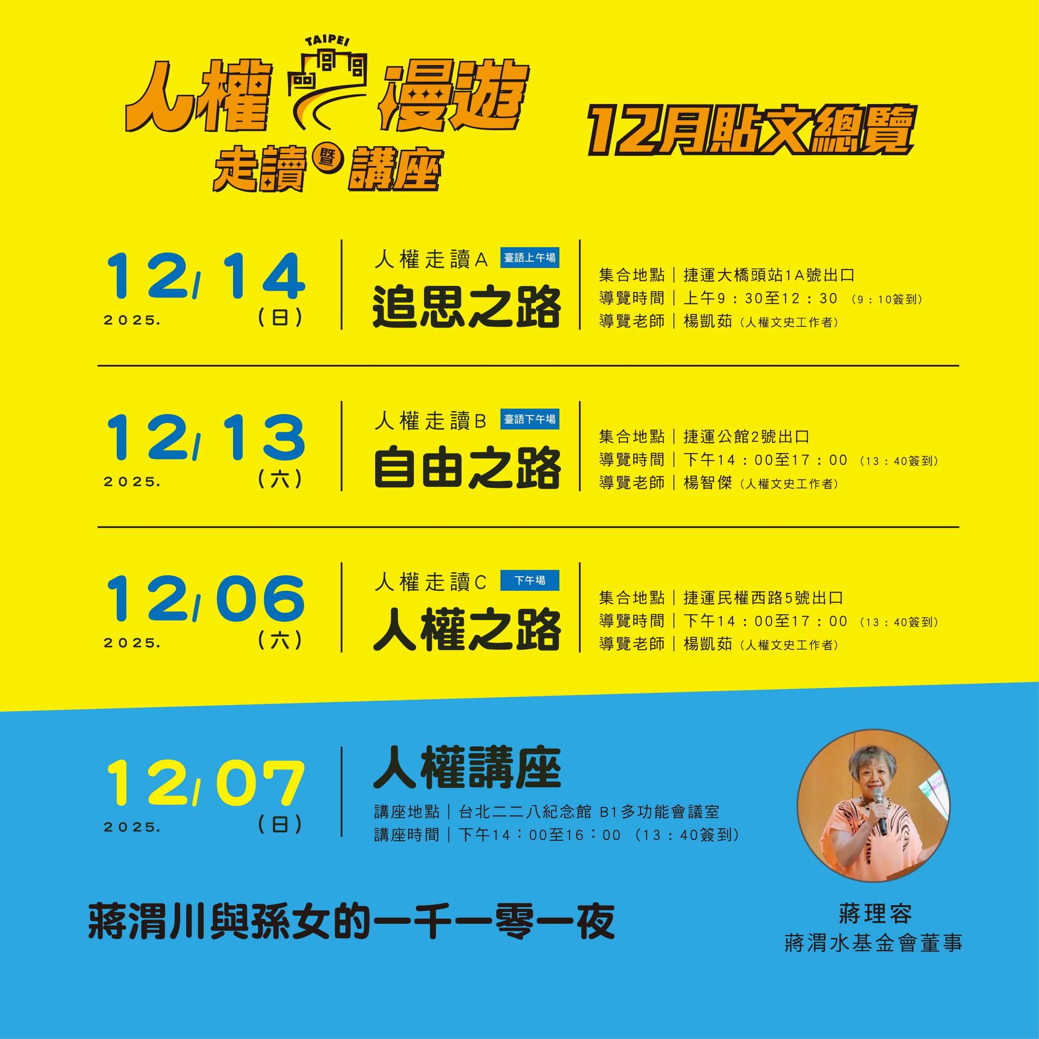 【台北二二八紀念館】2025人權漫遊 走讀暨講座 (12/6、7、13、14)