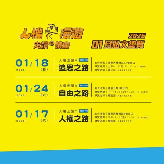 【台北二二八紀念館】2026人權漫遊 走讀暨講座-自由之路 (1/24)