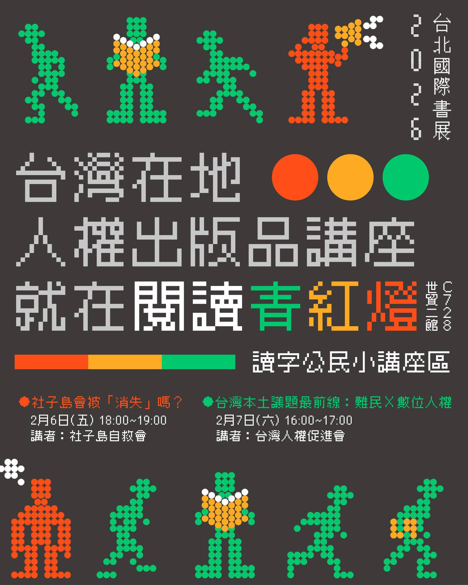 活動名稱【台灣人權促進會】台灣本土議題最前線:難民X數位人權 (2/7)活動簡介台灣長期以人權進步自許,卻至今沒有《難民法》,導致一群人長期被制度排除在外,造成台灣的人權缺口。對逃離迫害、戰亂而來的難民而言,台灣可能不是庇護所,而是另一個沒有身份、沒有保障的灰色地帶。本場講座的前半部將回顧《難民法》長年停滯的制度背景,分享真實個案在台灣面臨的生存困境,並討論現行政策如何讓人權承諾一再落空。這樣的制度缺口並不只發生在難民議題上。在數位治理快速擴張的時代,國家同樣透過身分與資料管理人民的生活。網路數位世界中,下載APP、註冊會員時,什麼樣的同意才是有效同意?個資三法在健保資料庫憲法判決後,最新進展如何?戶政外洩政府資訊公開訴訟,提告內政部後近況如何?一起來聊數位世界的資訊隱私,以及集氣倡議!現場將發送《網路自由的冒險詩篇》手冊。活動資訊活動日期:2026年2月7日 星期六,下午16:00 - 17:00活動對象:一般大眾活動地點:台北國際書展C728 讀字公民小講座區活動主辦單位:台灣人權促進會詳細資訊:更多詳細資訊請參考網站公告