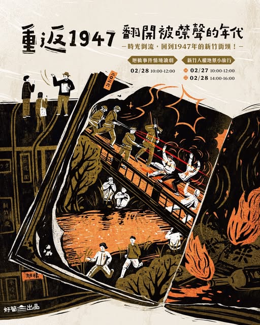 活動名稱【好筍出品】重返1947翻開被噤聲的年代:旭橋事件情境讀劇 × 新竹人權地景走讀 (2/27、28)活動簡介1947年3月2日,新竹旭橋。有人奔跑,有人呼喊,也有人再也沒有回家。好筍出品今年度再次舉辦「旭橋事件情境讀劇 × 新竹人權地景走讀」,邀請大家透過讀劇與城市走讀,重新走進歷史現場,理解那一天發生的故事。「二二八事件以及白色恐怖,從今日該如何理解?」一直是我們不斷思考的問題。當時的政治與社會的氛圍,激化了政府與人民的流血衝突,乃至於逐漸演變成族群間的對立。我們試圖開啓一次次的對話,讓我們的未來可以透過瞭解228事件,而更加珍惜自由民主的可貴。邀請大家在228連假和我們一起走進這座城市。透過角色讀劇,重新理解事件本身透過走讀地景,重新看見城市記憶活動資訊講師介紹:王昱登活動日期:2026年