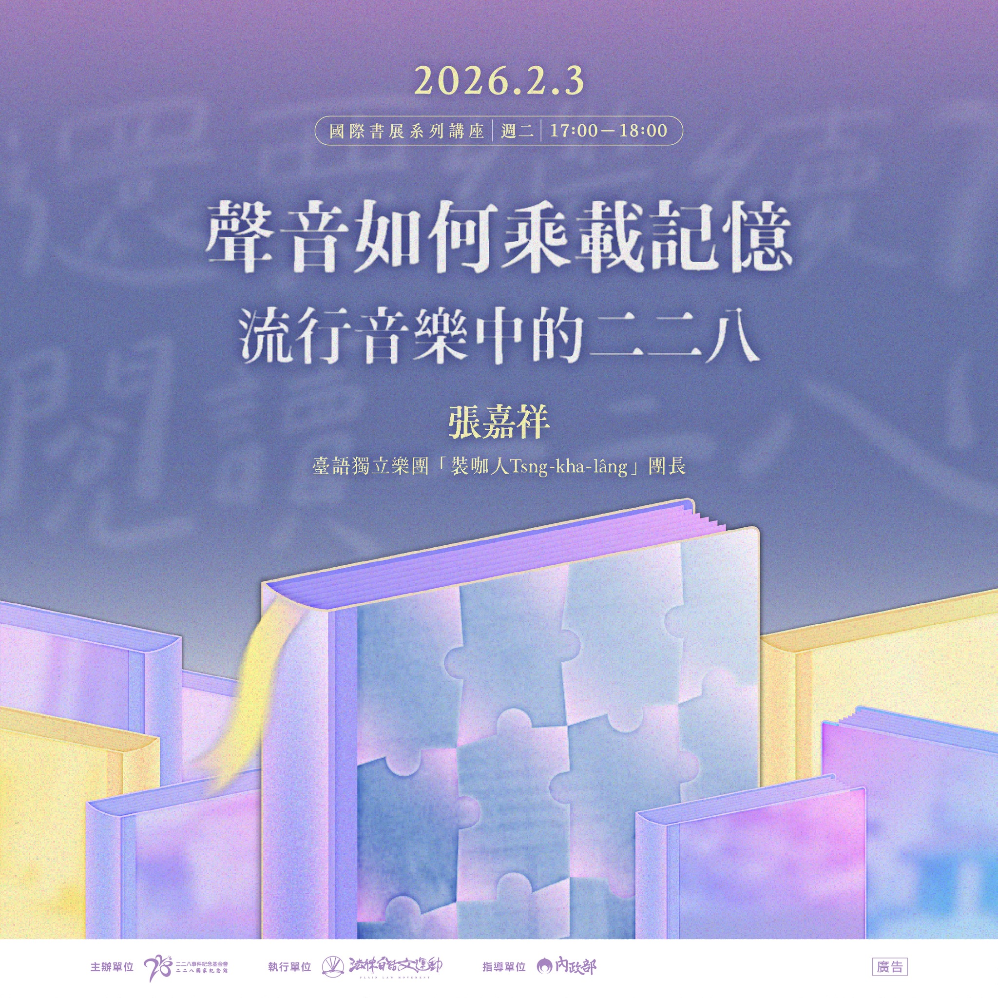 活動名稱【二二八事件紀念基金會】聲音如何乘載記憶:流行音樂中的二二八 (2/3)活動簡介如果你知道了一個故事,怎麼說才會讓人想聽下去?